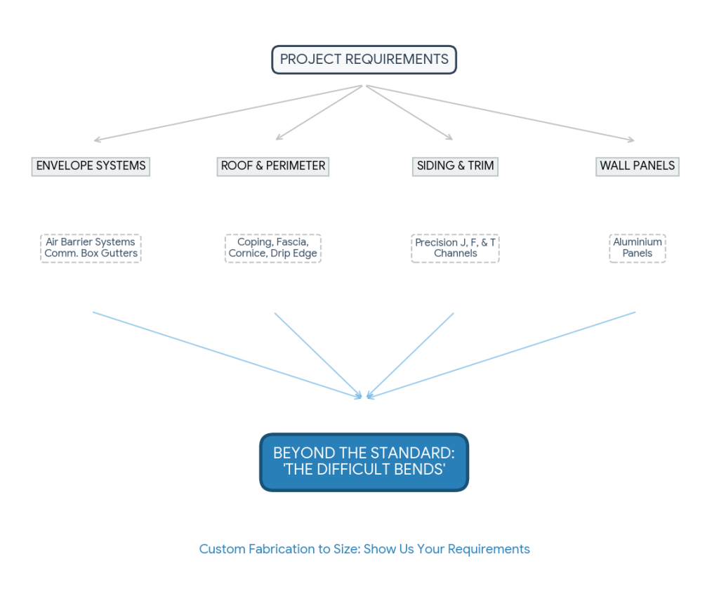 ACMI provides commercial-grade metal fabrication services designed specifically for contractors, builders, and outside businesses. Using our precision bender machinery, we transform high-grade raw materials into exact-spec profiles that eliminate field-fit struggles.